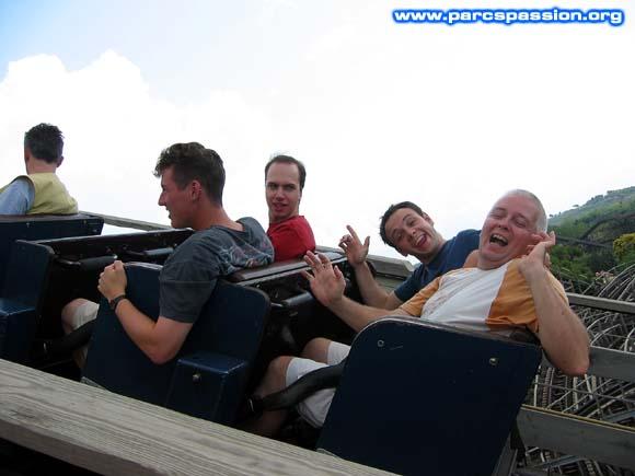 Yves et Manu font des grimaces dans le lift de Stampida / ... se défier sur Stampida.