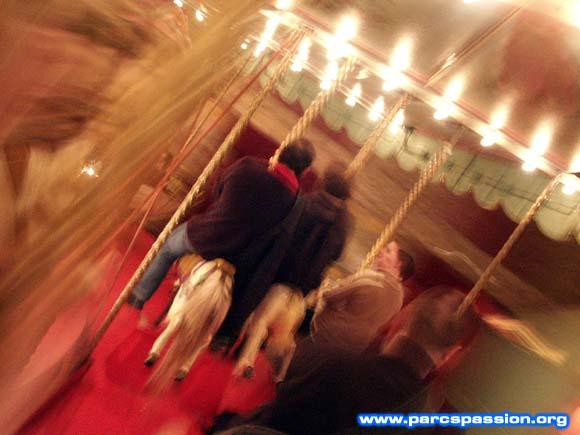 Vue floue depuis un des chevaux du carrousel / Oui oui, la photo est floue mais c'est joli, non ?