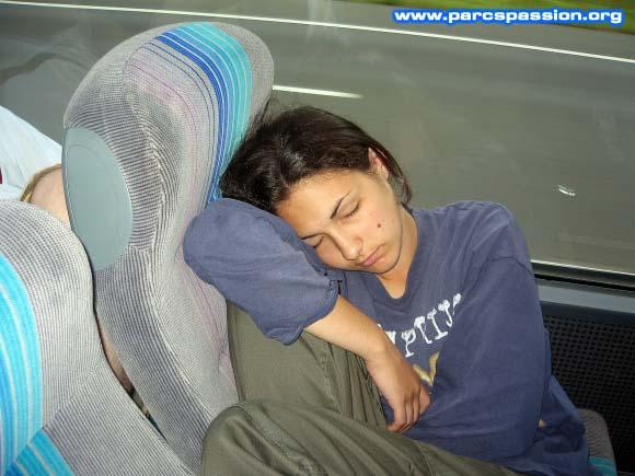 Charlotte dort dans le bus en direction du Puy du Fou / Puy du Fou, nous voilà ! Enfin... On verra après la sieste...