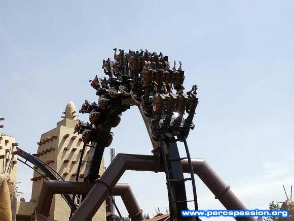 Un train dans le looping du Black Mamba / Le looping est la première des 5 inversions du circuit.