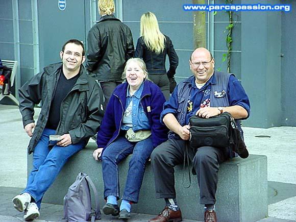 Le 26/04/2003 Philippe, Micheline et Jean-Louis sur un banc / "Hein ? Quoi ? Le Silverstar ? Ouais bof... Nous on préfère tester le front seat de chaque banc d'Europa Park !" |