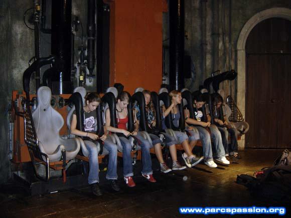 Un groupe de filles assises dans Mystery Castle / Oh ! Le Professeur a attrapé un groupe de filles !