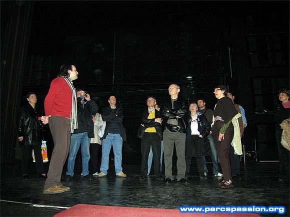 Le 18/03/2007 Le groupe et le guide sur la scène du Grand REX / Une fois montés sur scène, notre guide nous présente la Grande Salle du REX. |