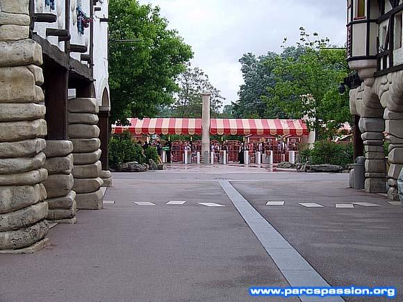 Le 12/05/2007 L'entrée du Parc Astérix vue depuis l'intérieur du parc / 8h50 du matin : le Parc Astérix dort, il n'a pas encore ouvert ses portes au public. |