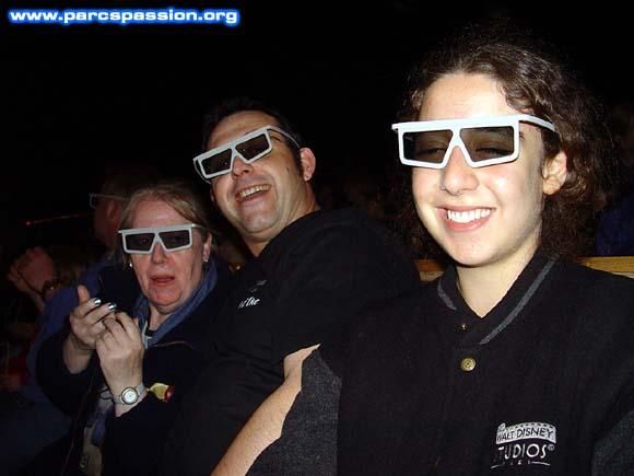Le 26/04/2003 Micheline, Philippe et Marie avec des lunettes 3D / Porter les lunettes à filtres polarisés de Panda Vision est toujours signe de bon goût et raffinement. |