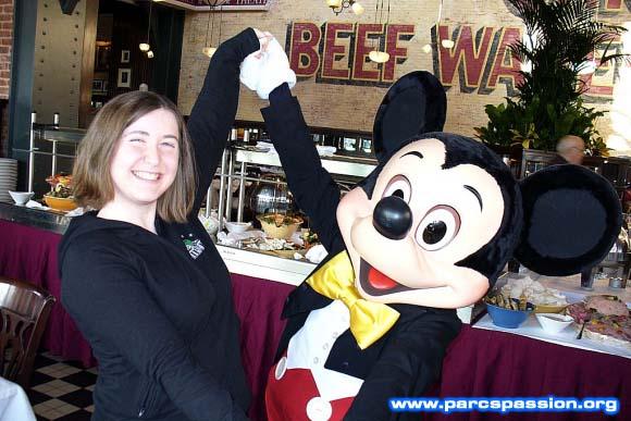 Jennifer et Mickey devant le buffet / "Bienvenue au Steackhouse pour le repas de l'assemblée générale !"