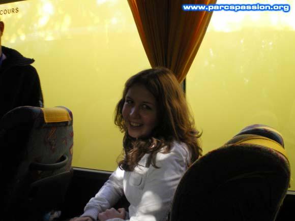Portrait de Christel assise dans le bus / "Yeah, we're going to England baby !"