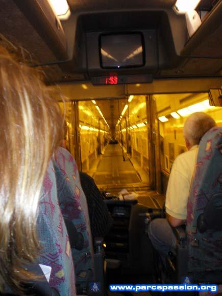 Entrée dans le shuttle vue depuis le bus / Il est 2h00 du matin et le bus monte dans le shuttle. On n'est pas couché !