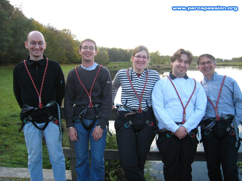 Le 18/10/2008 Le groupe prêt à affronter l'accrobranche au Ranch Davy Crockett / Nos Daltons et Ma sont prêts à affronter ponts de singes et tyroliennes. |