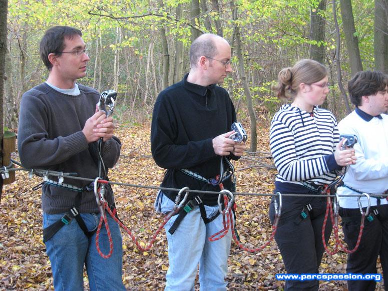 Le 18/10/2008 Le groupe apprend a manier le matériel pour l'accrobranche / Ludovic a tout compris. Ce n'est pas le cas de Xavier qui copie sur sa voisine, Domitille, qui elle-même copie sur son voisin, Lilian, qui... |