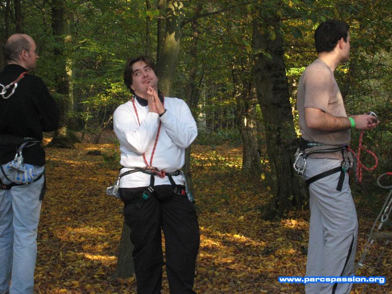 Le 18/10/2008 Lilian fait sa prière avant de monter dans l'arbre / "J'aurais préféré un bon hyper-mega-coaster, c'est bien moins risqué" |
