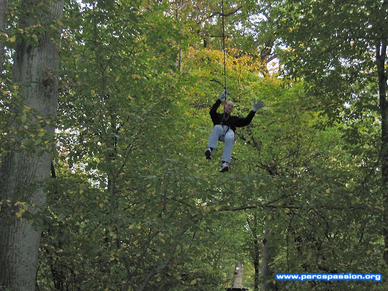 Xavier sur la tyrolienne de l'accrobranche du Ranch Davy Crockett / Airtime !