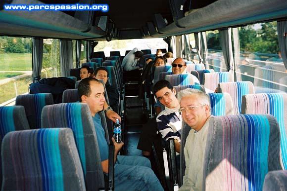 Le 27/09/2003 Ambiance décontractée à bord du bus / Pour le précédent voyage, on avait un minibus. Pour celui-ci, c'est un bus. Alors pour le prochain, un... megabus ? |