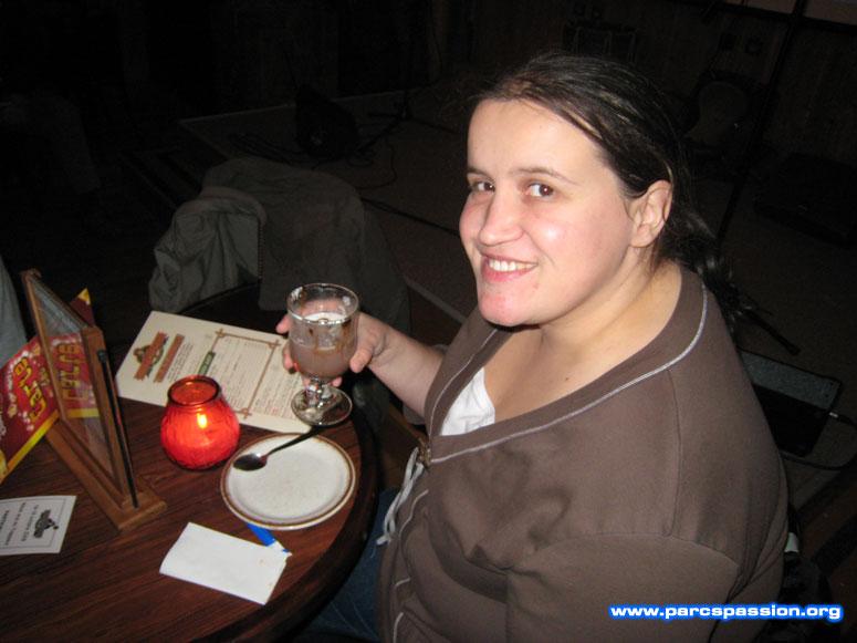 Le 18/10/2008 Stéphanie au Saloon du Ranch Davy Crockett / Stéphanie est contente, elle a trouvé une boisson de la même couleur que ses habits ! |