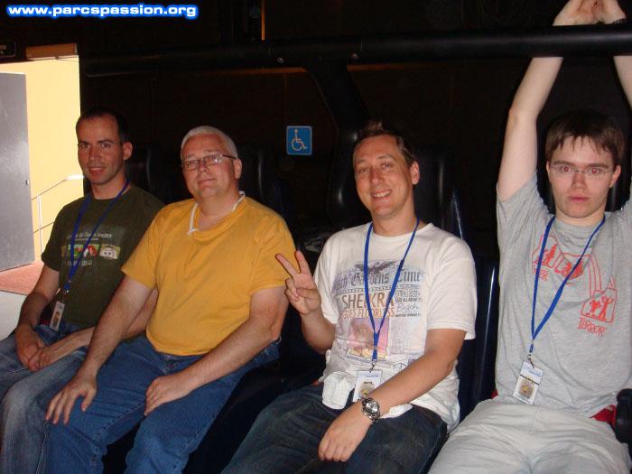 Le 31/05/2008 Sylvain, Yves, David et Pierre-Bertand dans un cinéma dynamique / Petite photo avant de se faire secouer comme une bouteille d'Orangina par ce cinéma dynamique. |