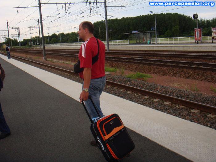 Olivier tire sa valise sur le quai de la gare du Futuroscope / Voilà, c'est fini ! Il est temps de prendre le TGV du retour...
