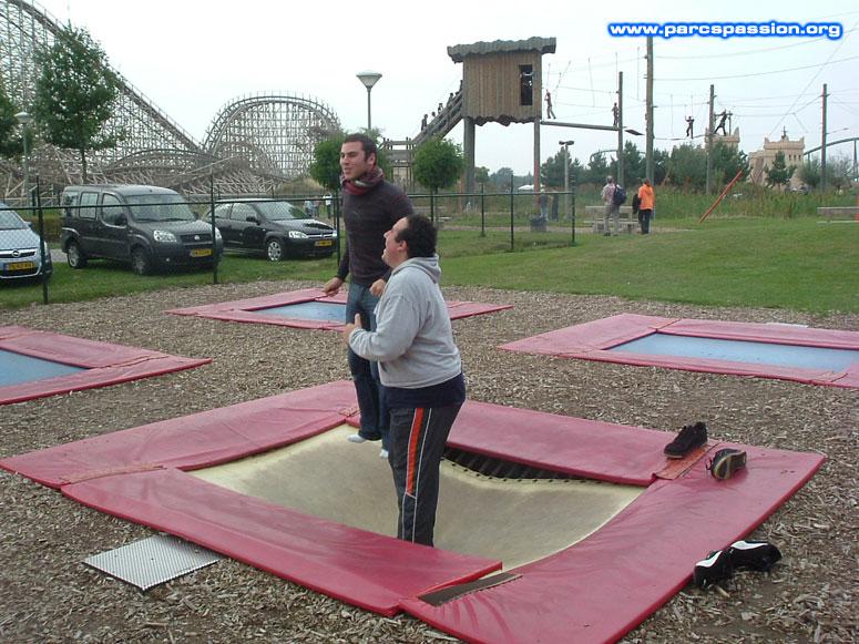 Louis-Gabriel et Mathieu sur un trampoline à Toverland / Mathieu en lévitation, merci Louis-Gabriel !
