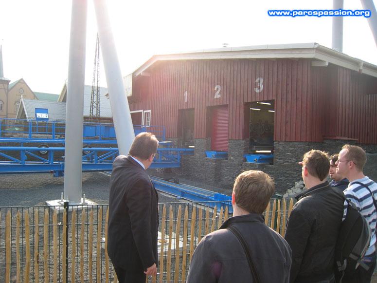 Devant le garage du Blue Fire Megacoaster / Attention, le gros oiseau blue va sortir !