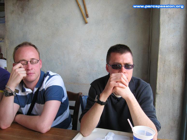 Le 08/05/2009 Guillaume dort et Florian fait semblant / "Hé hé, grâce à mes lunettes de soleil, on ne voit pas ce que je fais, c'est pas comme Guillaume !" |