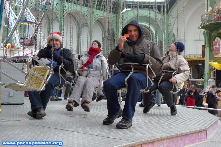 Le 20/12/2009 Lilan, Domitille, Sylvain et Pierre sur les chaises volantes / "Les chaises volantes pardi, grand classique devant l'éternel !" |