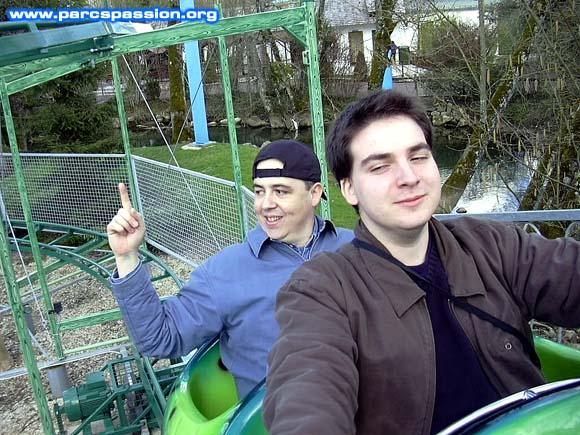 Eric et Nicolas dans le lift de la Chenille / "Plus un les amis ! Ce coaster compte comme +1 !"