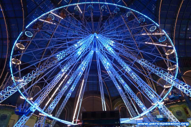 Grande roue de nuit et de face / La grande roue a été très joliment mise en valeur par son éclairage bleuté.