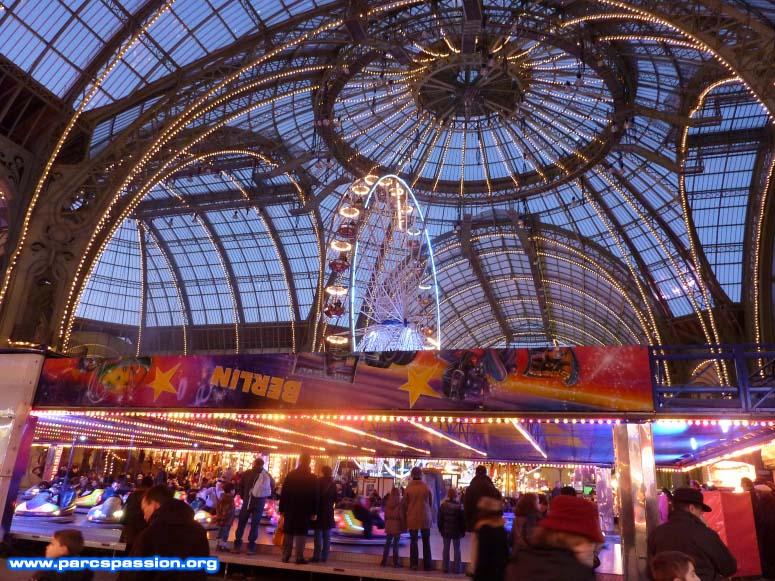 Le 20/12/2009 La nuit tombe sur le Grand Palais / Ah, ça commence à devenir intéressant. Avez-vous remarqué le panneau des auto-tamponneuses monté à l'envers ? |