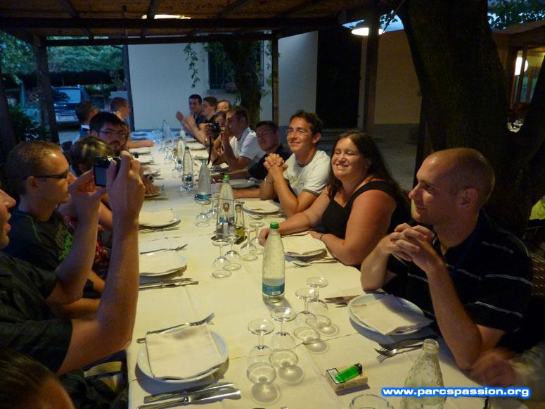 Le 24/08/2009 Parcs Passion repas italien / Tout le monde est bien assis et se raconte les impressions de ces 4 jours de parcs. |