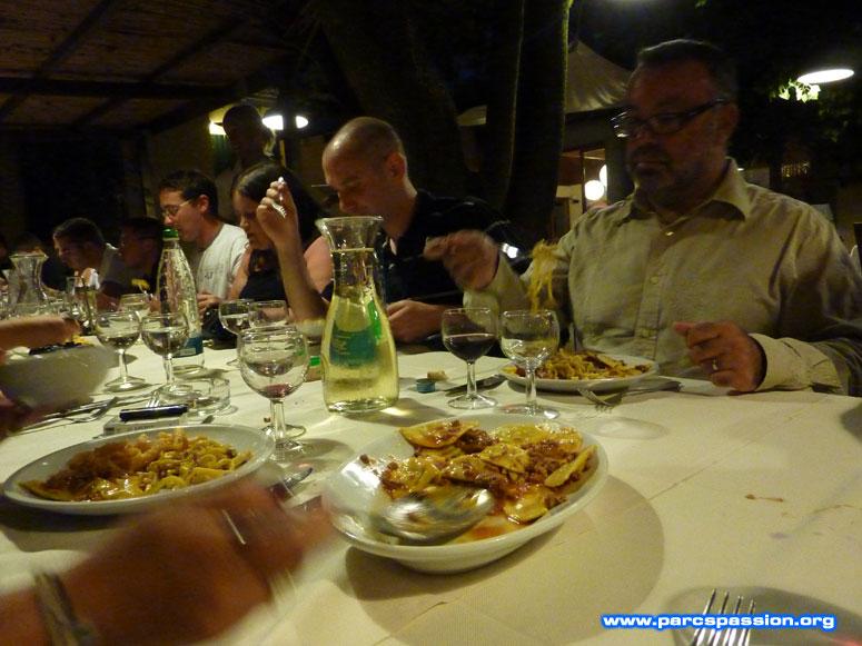 Parcs Passion repas italien / On se sert copieusement. Il faut reprendre des forces !