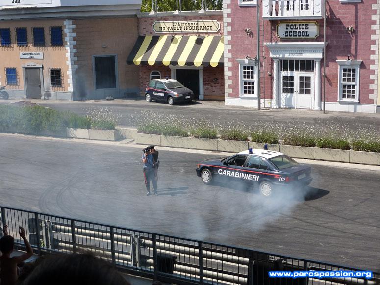 Le 24/08/2009 Spectacle de cascades Scuola di Polizia / Il s'agit donc d'un spectacle de cascades de voiture. Ca fume ! |