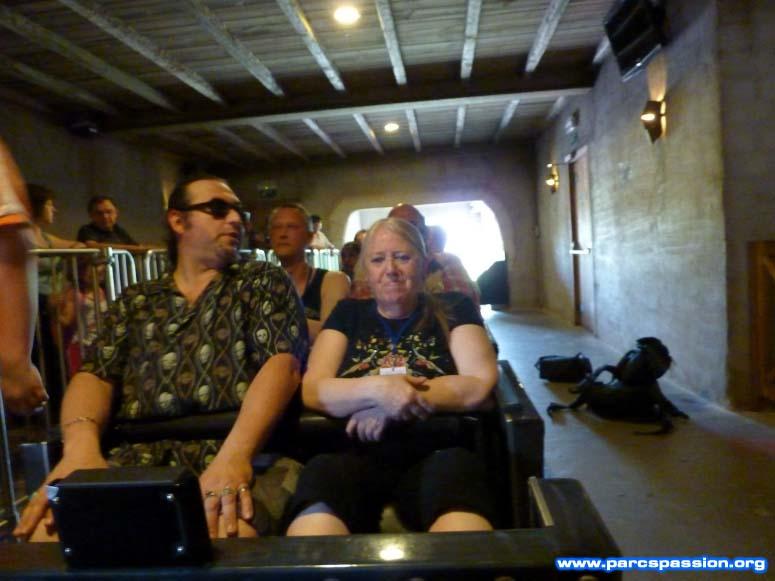 A bord du roller coaster Draak en gare / Même Micheline s'y colle.