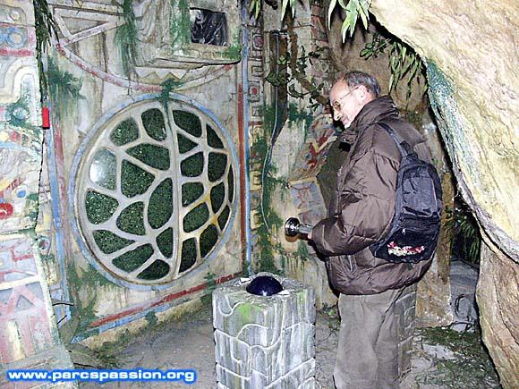 Alain devant une énigme à résoudre / 2 track-balls permettaient de déplacer des formes lumineuses dans le cercle.