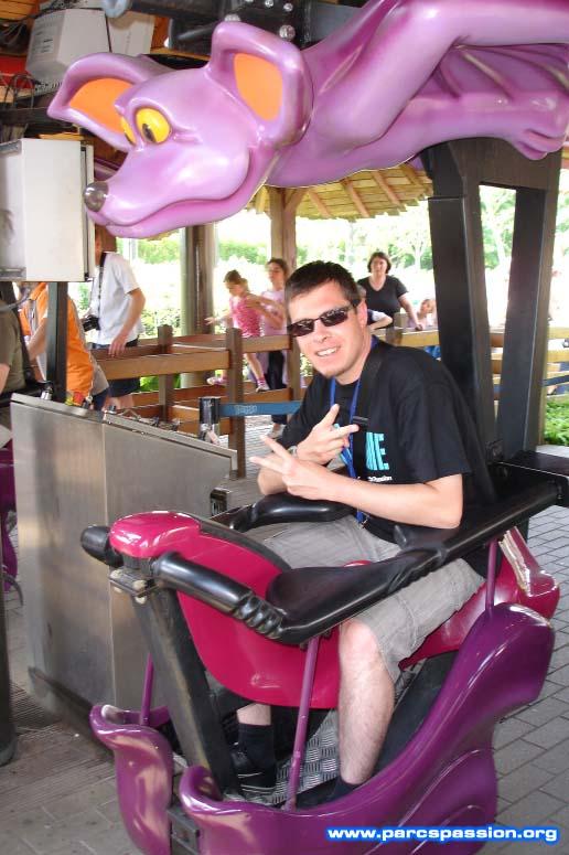 Florian en gare du suspended coaster Vleermuis / "Et celui-là, il compte +1 aussi ?"
